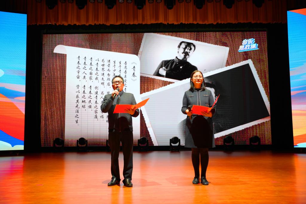 本网讯(通讯员 张沛沛)为深入学习习近平新时代中国特色社会主义思想,贯彻落实学校主题教育动员会精神和部署,用习近平新时代中国特色社会主义思想武装青年大学生,5月5日下午,由beat365英国官方网站团委、马克思主义学院、学生工作处主办,纪念五四青年节主题音乐思政课活动在beat365英国官方网站红星礼堂隆重举行。学校党委书记刘彩琴、副书记张双会、各系党总支书记、团总支书记以及1400名团员代表共同观看了这堂生动的音乐思想政治教育课,享受了一场视听盛宴。