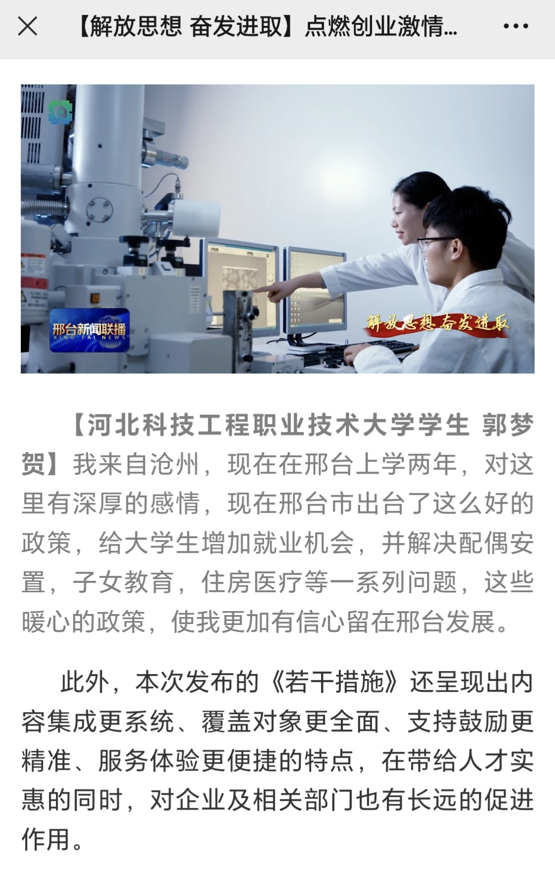 邢台广播电视台:点燃创业激情 倍增干事信心 鼓励人才回邢来邢创业就业政策在我市引发广泛关注