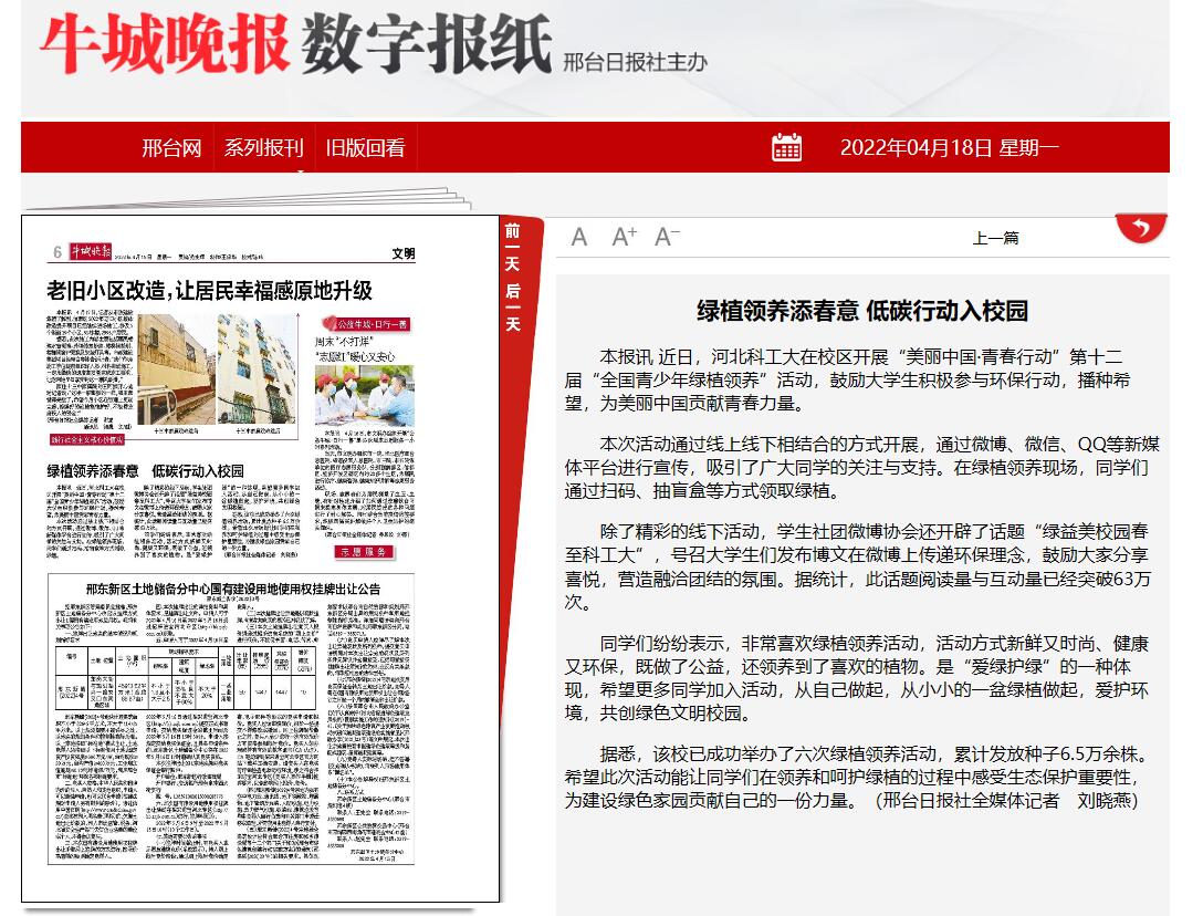 据悉,该校已成功举办了六次绿植领养活动,累计发放种子6.5万余株。希望此次活动能让同学们在领养和呵护绿植的过程中感受生态保护重要性,为建设绿色家园贡献自己的一份力量。(邢台日报社全媒体记者 刘晓燕)(来源 牛城晚报)