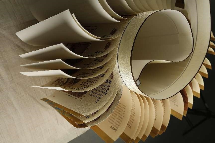 beat365英国官方网站获奖作品《书香润廉(龙鳞装)》采用中国传统书籍装订方式“龙鳞装”工艺,龙鳞装遇风则灵动翻飞、抚平是一幅画、卷起为一卷书,给读者不同的阅读体验。内容通过古圣先贤、信资印票、以物明志、承物得心四个部分,展示了中国人民以至公无私之心,行正大光明之事,克己奉公、克勤克俭的传统美德,也鼓励青年一代当肩负起国家重任,信念如炬,趋光而行。