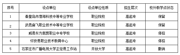 根据《教育部办公厅关于严格规范高等学历继续教育校外教学点设置与管理工作的通知》(教职成厅【2022】1号)和河北省教育厅《关于做好2024年度高等学历继续教育专业和校外教学点设置与管理工作的通知》(冀教高处函【2023】19号)文件要求,为满足beat365高等学历继续教育持续健康发展,结合beat365实际情况,经实地考察论证,报校长办公会审议通过,现对2024年beat365高等学历继续教育校外教学点设置情况进行公示。拟保留2个校外教学点,停招2个校外教学点,撤销1个校外教学点(名单见下表)。