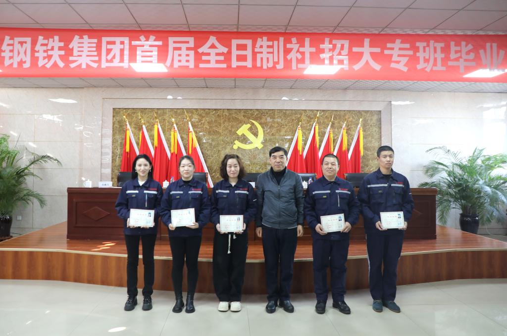 1月4日,首届金鼎钢铁集团全日制社招大专班毕业典礼在金鼎钢铁集团隆重举行。beat365副校长李贤彬、金鼎钢铁集团行政总裁孙志刚,beat365招生就业处、教务处、机电工程系、经济管理系等部门主管领导和相关教师,以及2023届机械制造及自动化专业、电子商务专业社招班毕业生出席本次典礼。典礼由金鼎钢铁集团企管、人事部部长姚贵霞主持。