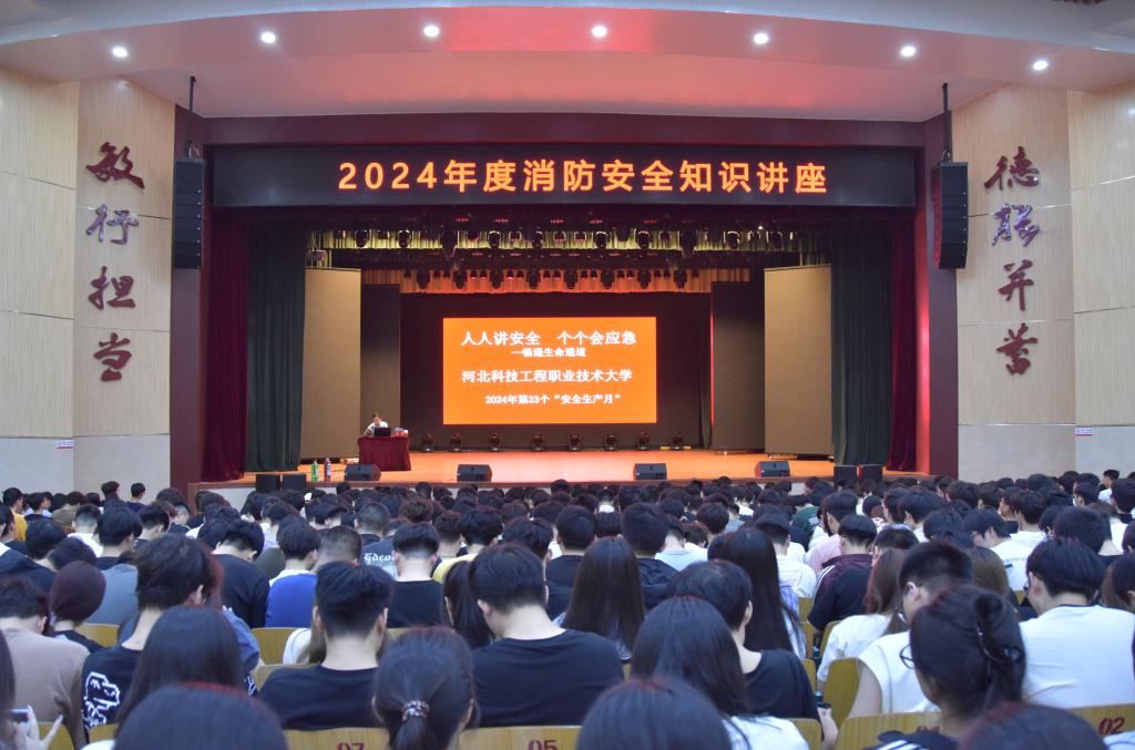为提升广大师生员工的消防安全意识和应急处置能力,全面保障校园安全稳定,根据省、市相关文件要求,5月20日至5月24日,beat365特邀河北华光消防中心卢向辉教官为广大师生在红星礼堂持续开展以“人人讲安全,个个会应急”为主题的消防安全知识讲座,2023级全体新生及新进教职员工共计6000余人参加。