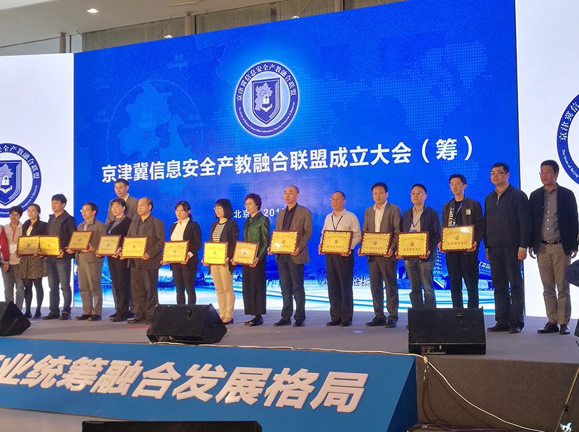 我院作为“联盟”的主要发起人之一,先后参加年初的筹备会议及准备工作,并在成立之际任常务理事单位,承担数据安全工作组组长职责,负责联盟数据安全小组后续一系列工作。联盟大会现场为联盟副理事长单位14家,院校常务理事11家,企业常务理事13家进行的授牌仪式,并开通了联盟网站。经过前期酝酿,京津冀校企合作7个项目进行了现场签约。