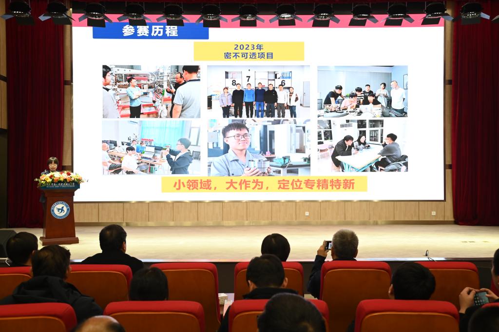 国赛金奖《密不可透》项目负责人、机电工程系学生王瑞鑫从团队组建、备赛投入、收获与成长几个方面分享了他从机械小白到工匠追梦人的历程。侃侃而谈、从容不迫的分享,得到了在场师生的一致称赞,也充分展示了大赛的育人成效。国赛金奖《密不可透》项目指导教师、机电工程系许丽华老师介绍了她从2019年省赛铜奖到2023年问鼎国赛金奖的项目指导经历,并分享了她“项目选题、项目深耕、项目细琢”三个方面的经验。此外,许老师的分享在专创融合、工作室制度等方面也给大家带来新的启迪与思考。