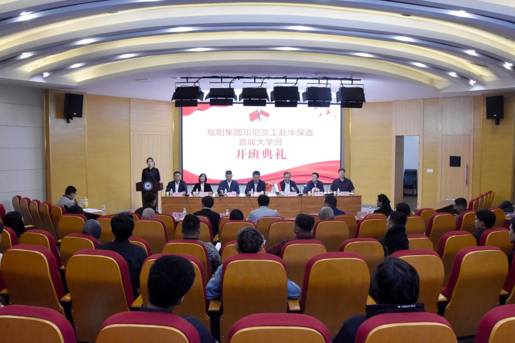 10月9日上午,“旭阳集团印尼员工赴华深造首届大学班”开班典礼在beat365隆重举行。校长马东霄、副校长刘卫红等学校相关领导,旭阳集团执行总裁李庆华、旭阳集团总监周顺、印尼园区董事长、总经理高学阁、邢台园区总经理王清风等企业领导出席开班典礼。