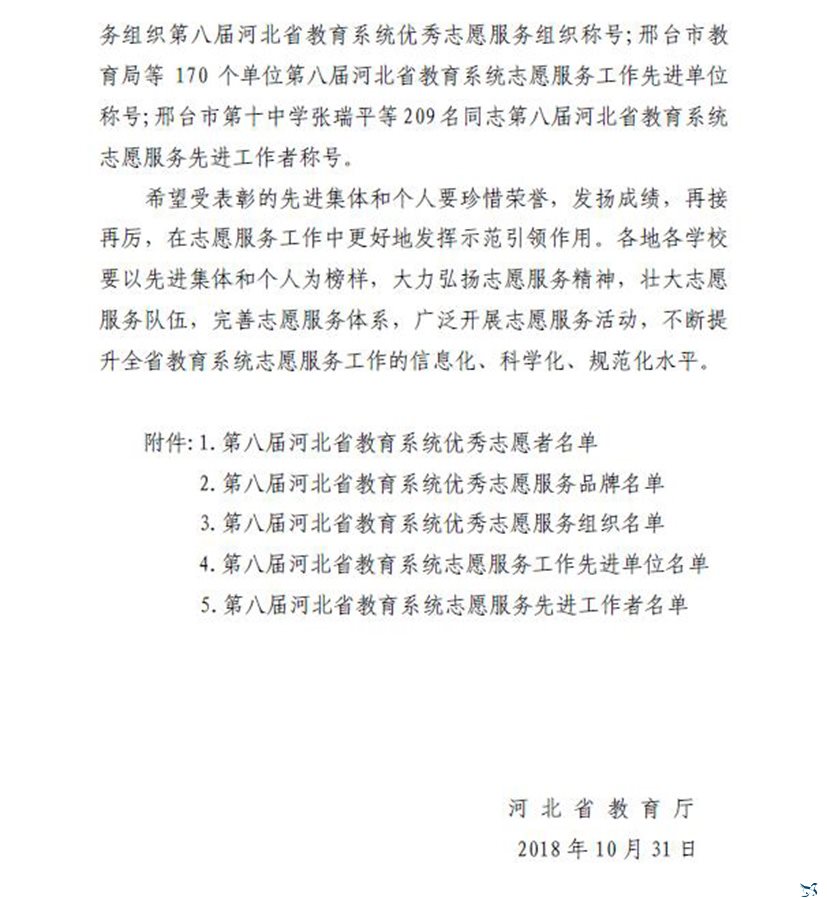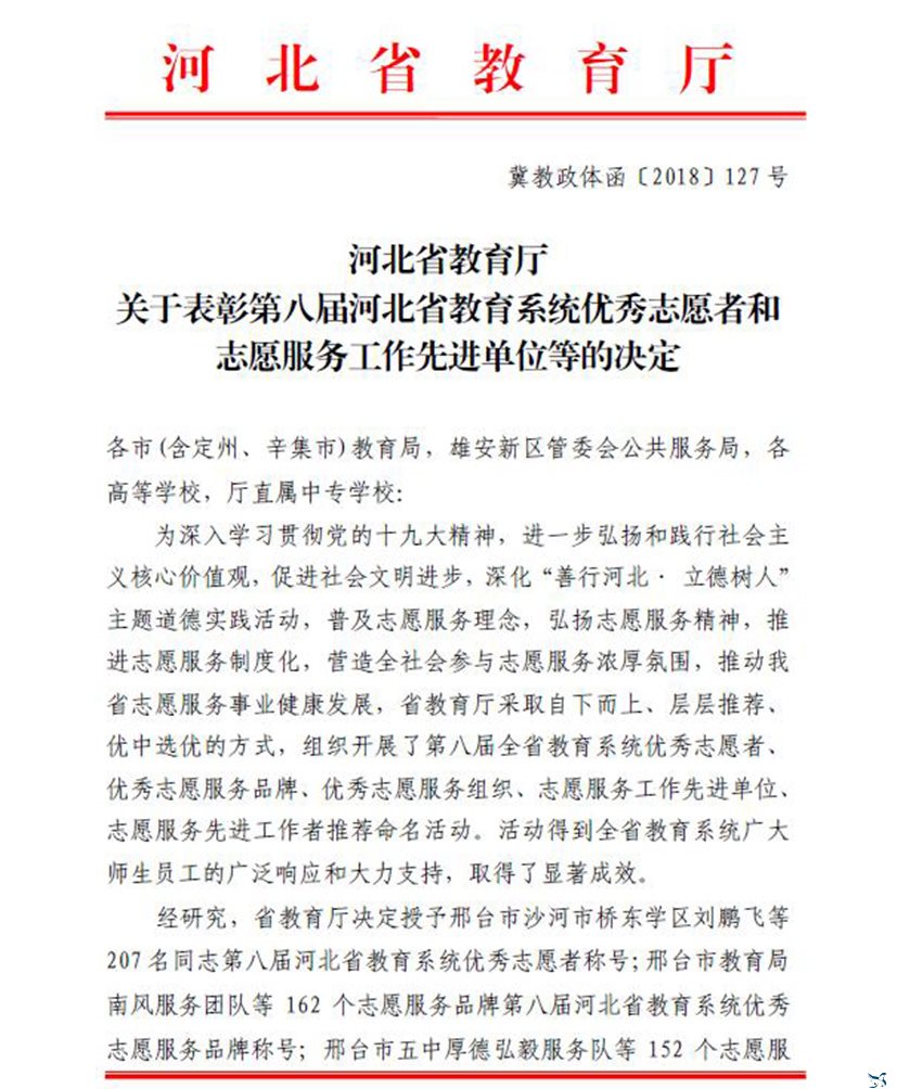 日前,河北省教育厅发布《关于表彰第八届河北省教育系统优秀志愿者和志愿服务工作先进单位等的决定》,我院教师徐振立获得“第八届河北省教育系统优秀志愿者”称号,我院汽车系“文明交通安全出行”志愿服务行动获得“第八届河北省教育系统优秀志愿服务品牌”称号,我院服装工程系志愿服务队获得“第八届河北省教育系统优秀志愿服务组织”称号,我院会计系获得“第八届河北省教育系统优秀志愿服务先进单位”称号,我院教师于小五获得“第八届河北省教育系统优秀志愿服务先进工作者”荣誉称号。