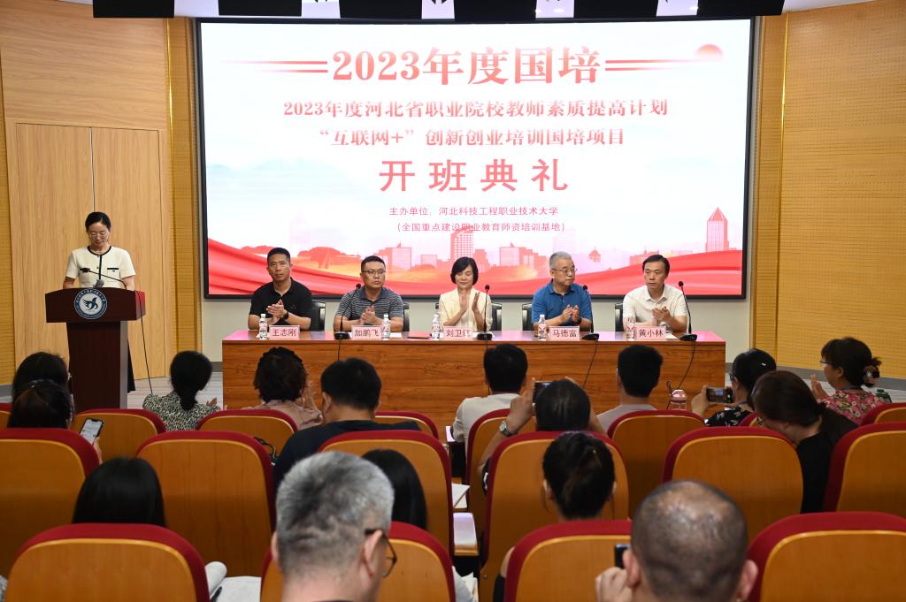 7月8日上午,2023年度河北省职业院校教师素质提高计划“互联网+”创新创业国培项目开班典礼在beat365图书馆报告厅隆重召开。副校长刘卫红、资深创业导师马德富出席典礼,继续教育与培训部、招生就业处领导、老师和来自省内93所中高职院校的130余名教师共同参加开班典礼。