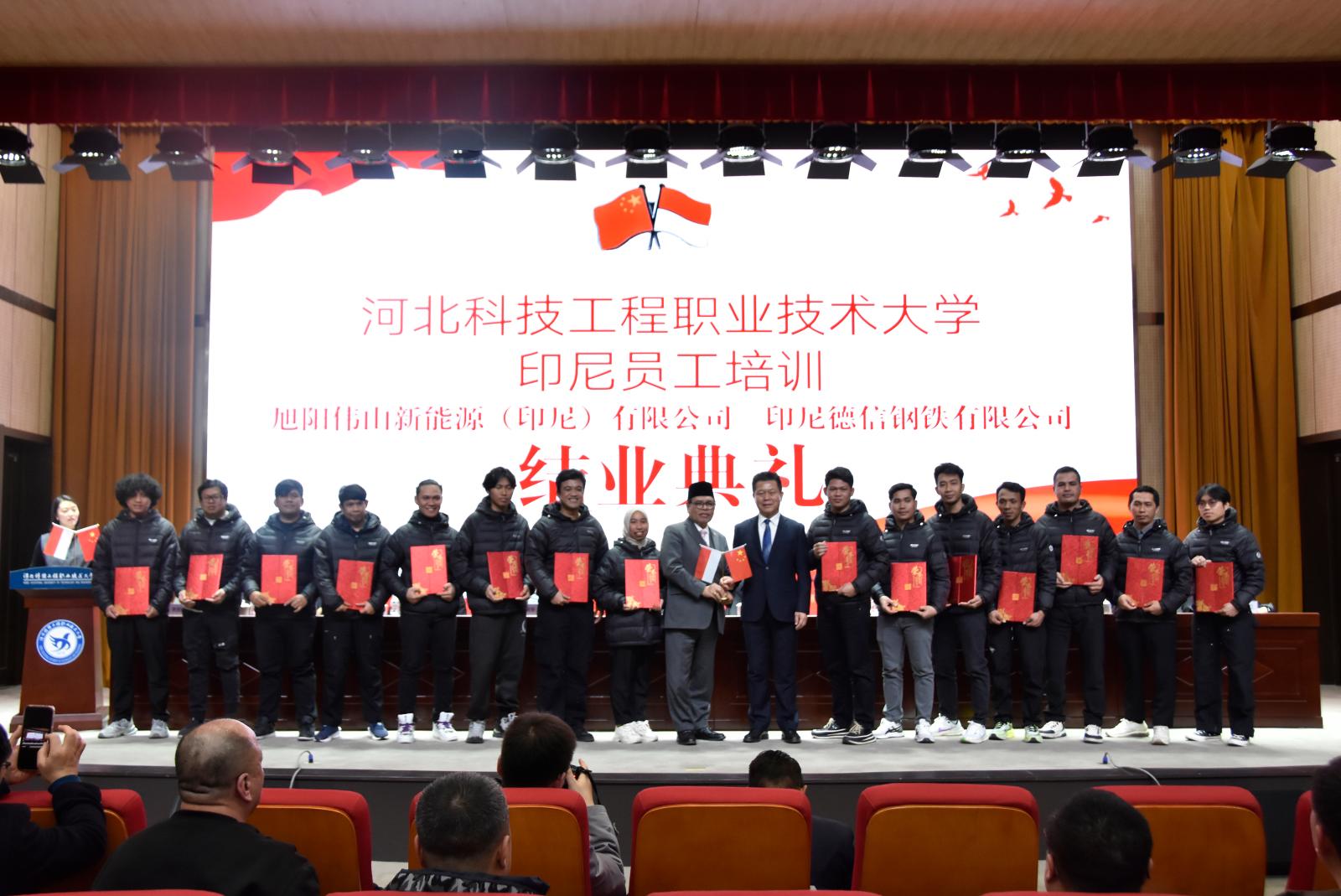 随后,马东霄向周浩黎大使赠送了邢台非物质文化遗产邢窑白瓷,双方共同为优秀学员颁发荣誉证书。校企双方领导分别为所有学员颁发结业证书。最后,周浩黎大使带领印尼学员们为现场嘉宾献上印尼传统歌曲和中国经典歌曲《月亮代表我的心》,在悠扬的歌声中,结业典礼圆满落下帷幕。