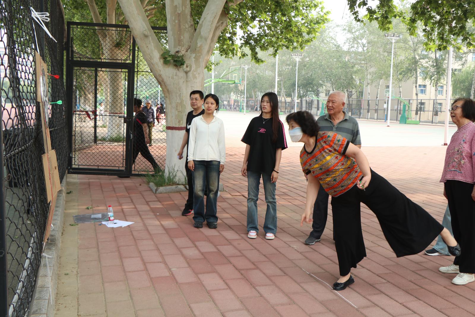 运动会结合老年人的年龄、身体状况,“量身定制”了“赶猪”、套圈、飞镖、丢沙包等运动项目,既安全有趣又能锻炼手眼协调。“赶猪”项目,老同志们手拿道具杆子赶着篮球走,你追我赶,奋力争先;“套圈”场地手起圈旋,瓶套入圈;飞镖现场手眼合一,靶心在握;丢沙包高抛稳落,抛出希望,收获快乐。老同志们银发飘飘,欢声笑语,这一刻好像忘记了年龄,也引来同学们的驻足观看,加油喝彩。