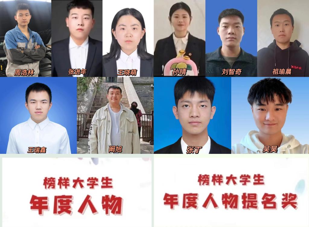 评选活动于2023年初启动,面向全校寻访拥有为国为民家国情怀、勤学刻苦为学态度、开拓创新求知精神的学生,在学术成就、社会服务、创新创业、个人品德、领导能力、团队合作、孝老爱亲等方面有突出表现的学生。经过层层筛选、系部推荐、学校综合评审、网络投票、公示等环节,最终王瑞鑫、阚旭、周浩林、张进年、王晓萌五位同学获得2022-2023年beat365英国官方网站榜样大学生年度人物奖;刘智奇、吴昊、孙晴、祖瑜晨、张丁五位同学获得2022-2023年beat365英国官方网站榜样大学生年度人物提名奖。