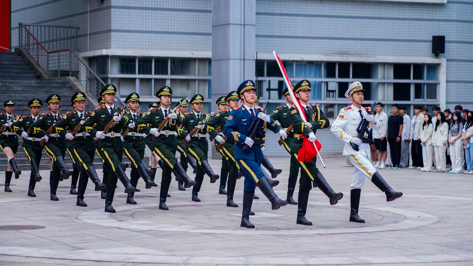 烽火记忆照前路,秋风为序启新程。今年是中国人民抗日战争暨世界反法西斯战争胜利80周年。早上6时30分,在全校师生的注视下,国旗护卫队员迈着整齐划一的步伐,护卫着五星红旗昂首挺胸地走向升旗台。当雄壮的国歌响起,鲜红的五星红旗像一团炽热的火焰,沐浴晨曦、冉冉升起,全校师生面向国旗庄严肃立,行注目礼。这一刻,我们缅怀历史、致敬英雄;这一刻,我们准备就绪,以崭新面貌开启新的一程。