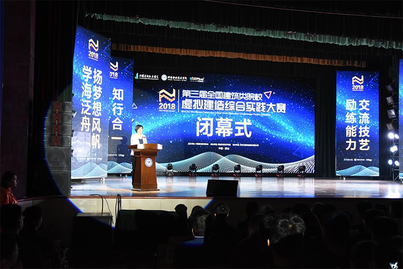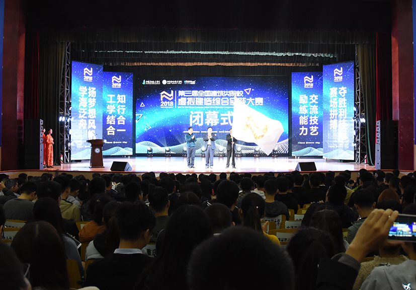 15日,中国建设教育协会副理事长兼秘书长王凤君,中国建设教育协会副秘书长赵研,杭州万霆科技股份有限公司董事长吴通,浙江建设职业技术学院副院长汤宗礼,辽宁城市建设职业技术学院建筑工程系主任刘鑫,以及学院党委书记刘彩琴、院长马东霄、副院长李贤彬等领导出席大赛闭幕式为获奖团队颁奖,并进行赛旗交接仪式。闭幕式为大家呈现了精彩的节目表演,现场气氛热烈。