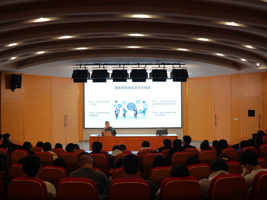 讲座上,现代教育技术中心主任刘京中教授围绕国家网络安全法律法规、网络安全八大隐患、如何保护个人信息安全、防范网络诈骗的注意事项四方面内容,结合贴近校园、贴近师生的典型案例,向同学们深入浅出的阐述了网络安全相关知识。刘主任强调,青年大学生既是网络安全的受益者,也是网络安全的守护者,维护校园网络安全是全体师生的共同责任,我们要认真遵守网络文明公约,自觉抵制网上不良信息,争做新时代网络文明的倡导者、拥护者和践行者。该讲座主题鲜明,寓意深刻,同学们认真聆听并积极参与互动,现场反响热烈。