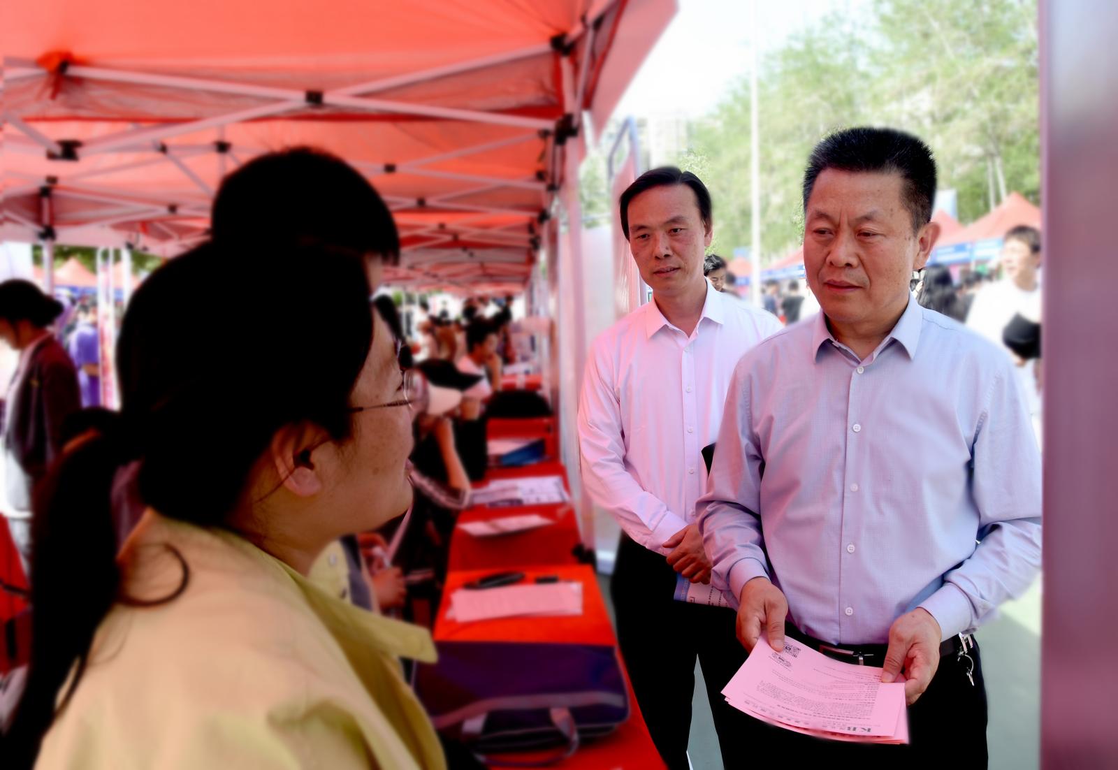 学校党委书记马东霄、邢台市人力资源和社会保障局局长王勇武等相关领导到现场指导工作。马东霄在现场与用人单位和毕业生亲切交流,细致了解人才需求,听取用人单位对beat365人才培养、专业建设等方面的意见建议,同时鼓励毕业生明确自我定位、怀揣家国情怀,以务实态度积极就业。