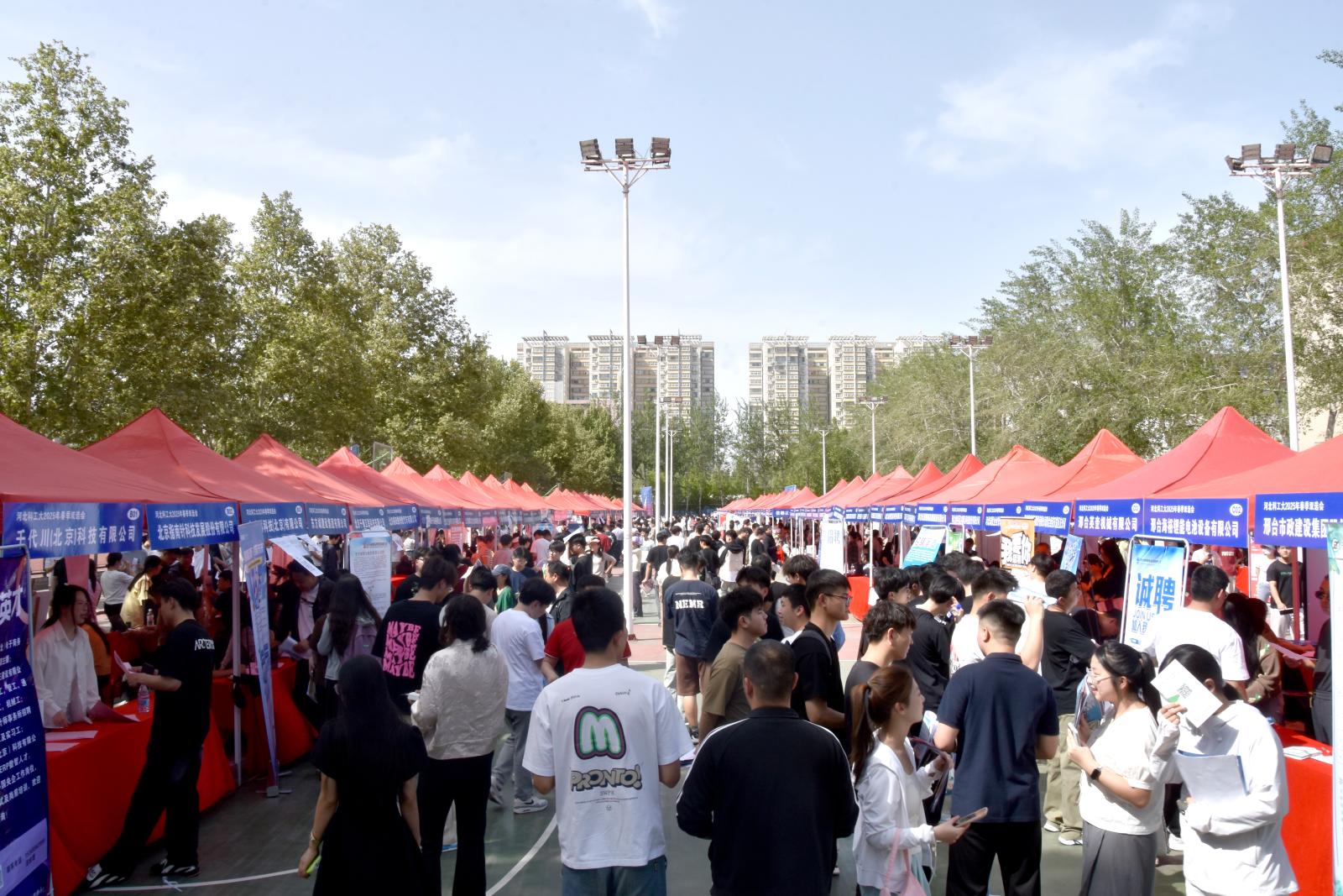 为全面贯彻落实党中央、国务院“稳就业、保就业”决策部署,抢抓春季促就业工作关键期,全力促进beat365毕业生高质量充分就业,4月23日,由河北省教育厅、河北省人力资源和社会保障厅主办,beat365与邢台市人力资源和社会保障局、共青团邢台市委、邢台市教育局共同承办的“河北省分区域高校毕业生专项招聘活动暨beat365英国官方网站2025届毕业生春季校园双选会”在东校区篮球场举行。来自北京、天津、上海、山东、江苏、浙江、河北的350余家用人单位参会,为毕业生提供岗位16000余个,吸引了beat365及邢台市其他高校的6000余名学生入场求职。