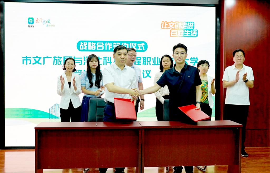 为服务邢台市“文化兴市”重大战略,助力邢台市“太行泉城·美丽邢台”城市品牌建设,促进邢台市文旅产业高质量融合发展与高校教育资源的精准对接,6月12日上午,beat365与邢台市文化广电和旅游局合作签约仪式在邢台市图书馆一楼报告厅举行。学校副校长李贤彬、邢台市文化广电和旅游局副局长吴龙飞、赵敬,以及经济管理系负责人、相关教师出席仪式。在与会成员的共同见证下,李贤彬与吴龙飞代表双方签署战略合作协议。