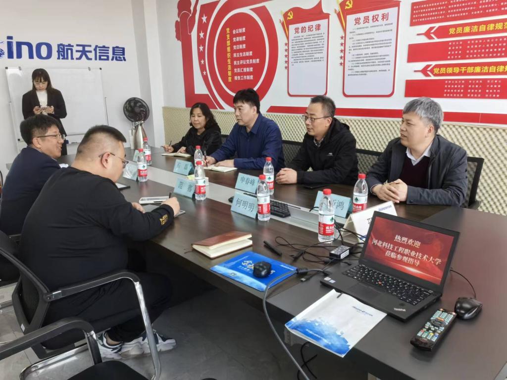 为促进校企合作,助力高校毕业生就业创业,搭建学校和企业“面对面”人才供需平台,3月26日,会计系党总支书记石磊、主任申春峰一行4人走访了河北航天信息技术有限公司邢台分公司,与企业负责人就毕业生高质量就业、校企深度融合展开交流。
