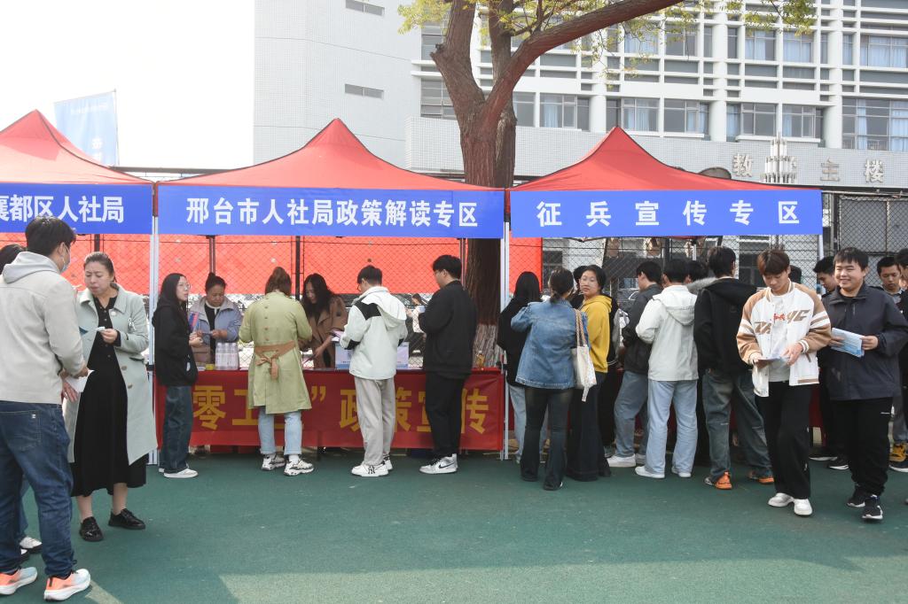 本次招聘活动以“筑梦青春·职引未来”为主题,招聘岗位涵盖了全校所有专业,涉及装备制造、人工智能、新能源、大数据、建筑、金融、服务等行业领域。参会企业有际华集团、华北铝业、河北港口集团有限公司等央企、国企及其子公司,歌尔股份有限公司、北京指南针科技发展股份有限公司等业界领军企业,吉利汽车、奇瑞汽车、长城汽车股份有限公司、意尔康股份有限公司等行业翘楚,以及远大阀门集团、中科荣曜(河北)智能电子有限公司等专精特新企业,行业及区域特色明显。会场布置了10个专区,包括京津企业专区、省外企业专区、省内市外、邢台市用人单位专区以及人社局企业专区等。同时,双选会也吸引了石家庄、邯郸、邢台部分高校应往届毕业生前来。截至目前,本次双选会约1600余名毕业生达成就业意向。