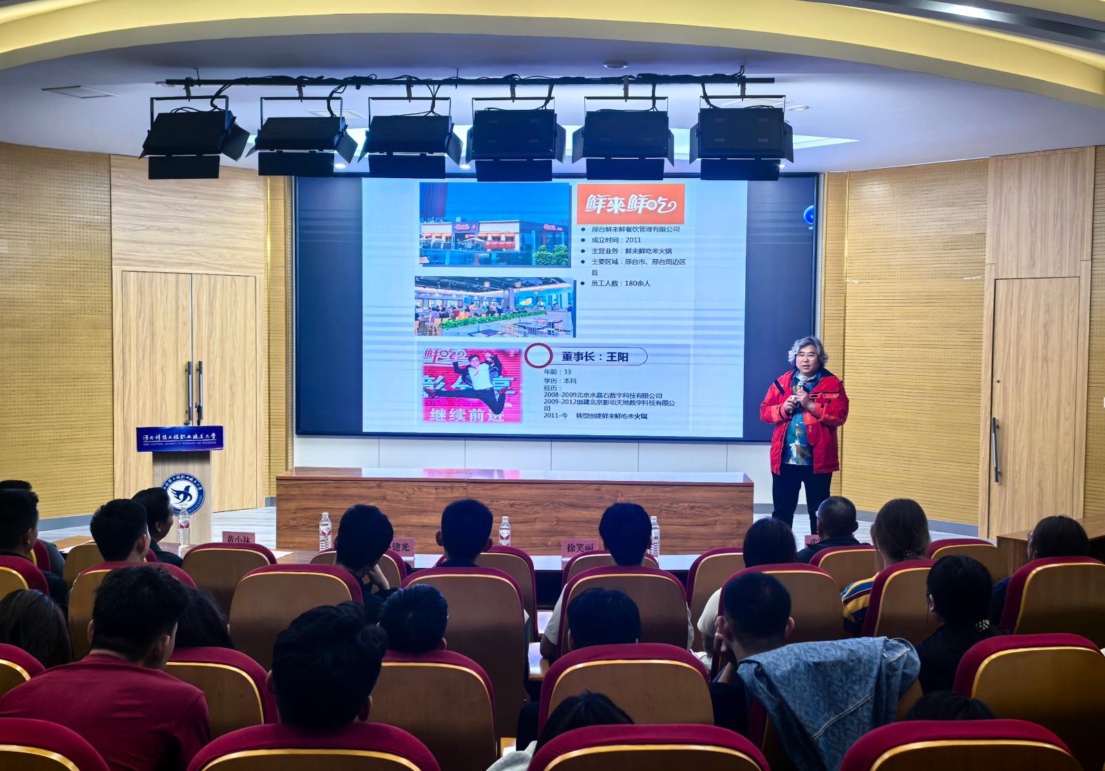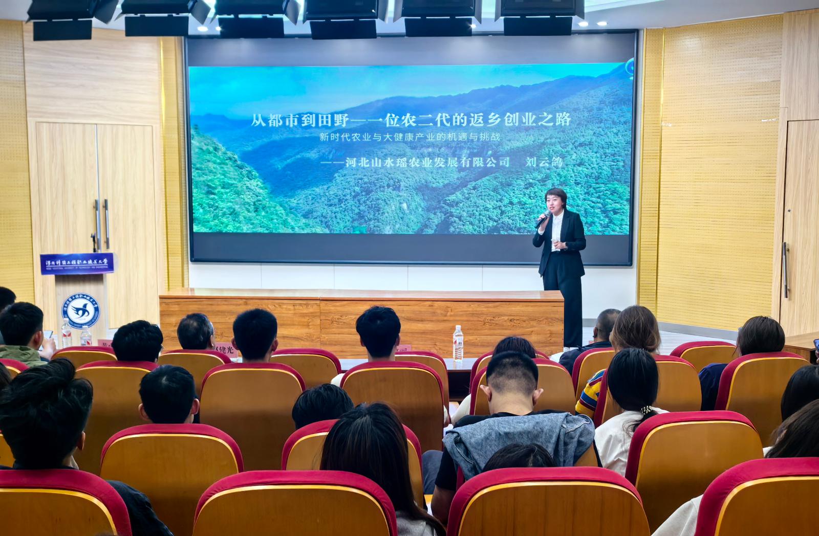 活动特邀青年创业联合会副会长王阳(鲜来鲜吃火锅创始人)、河北睿淦无损检测技术有限公司总经理杨杰、河北山水瑶农业发展有限公司总经理刘云鸽三位青年企业家担任主讲,他们通过案例分析、情景模拟等形式,围绕职业规划、求职心态、创业选择、企业经营等热点问题与同学们展开互动交流,为同学们就业创业提供生动指导与借鉴。