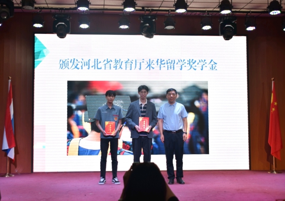 会计系老师李佳的二胡表演《凤凰花开的路口》伴随着留学生回顾视频将典礼推向高潮。汽车工程系主任于万海和电气工程系主任陈丽为留学生颁发结业证书。李贤彬为获得河北省教育厅来华留学奖学金的同学颁发荣誉证书。