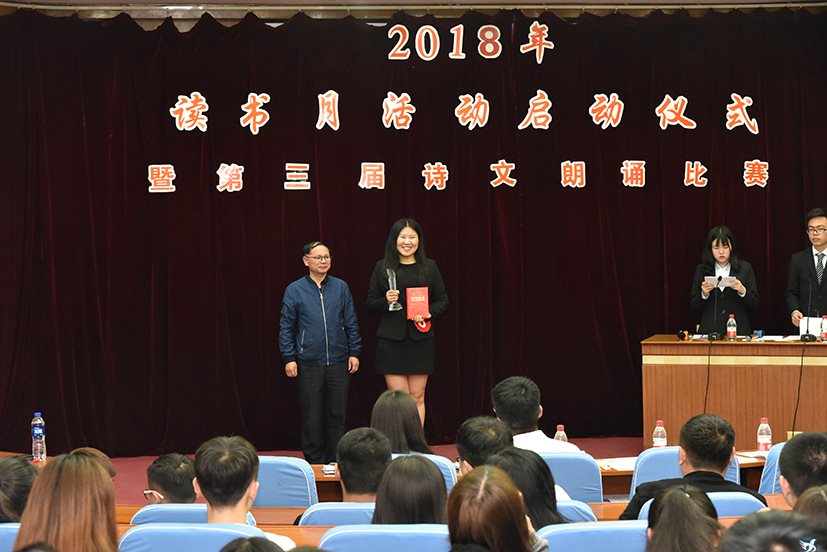 各位选手深情朗诵经典文学作品,让同学们深切感受到中华经典诗文的魅力,对构建书香邢职,营造校园浓郁的阅读氛围起到良好的带动作用。