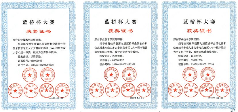第九届蓝桥杯全国软件和信息技术专业人才大赛河北赛区决赛4月1日在河北化工医药职业技术学院举行,省赛成绩于日前揭晓。我院信息工程系学子获得河北省一等奖。