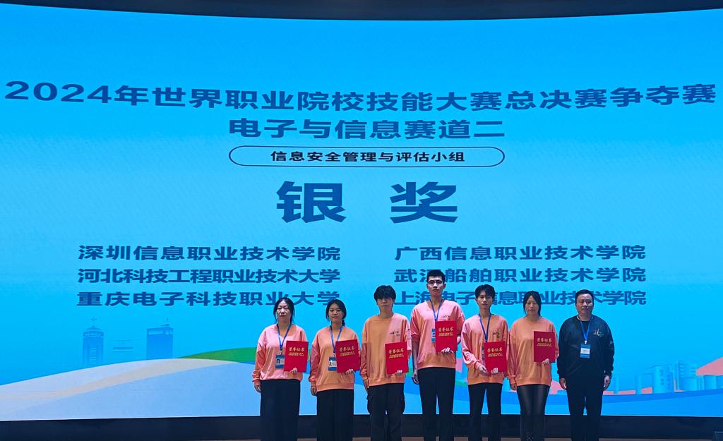 10月26日下午,2024年世界职业院校技能大赛总决赛争夺赛电子与信息赛道二(信息安全管理与评估小组)赛事闭幕式在重庆工业职业技术学院举行。经过2天角逐,由beat365信息工程系学生马子昂、李红熠、张雨欣(指导教师:冯磊、郗君甫)组成的参赛团队斩获银奖。