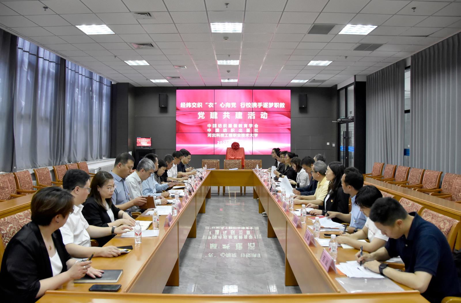 马东霄在会议致辞中表示,此次共建签约是“党建引领业务、业务反哺党建”的创新实践,是职业本科教育主动对接新质生产力发展,深化产教融合的关键突破,将为纺织服装行业人才培养提供新思路。纪晓峰指出,此次三方联动将有助于整合行业资源,促进教育链、人才链与产业链的有机衔接,为行业转型升级注入新动力。郑伟良表示,出版行业与高校育人工作紧密相连,出版社将充分发挥资源优势,积极探索出版服务融入职业教育的新路径,通过教材开发、数字资源建设等方式,为高校人才培养提供更加精准、高效的支撑。服装工程系党总支书记王振贵介绍了支部共建目标愿景,以党建为纽带,构建“行业指导、企业参与、学校主体”的协同发展机制,服务服装产业高质量发展。