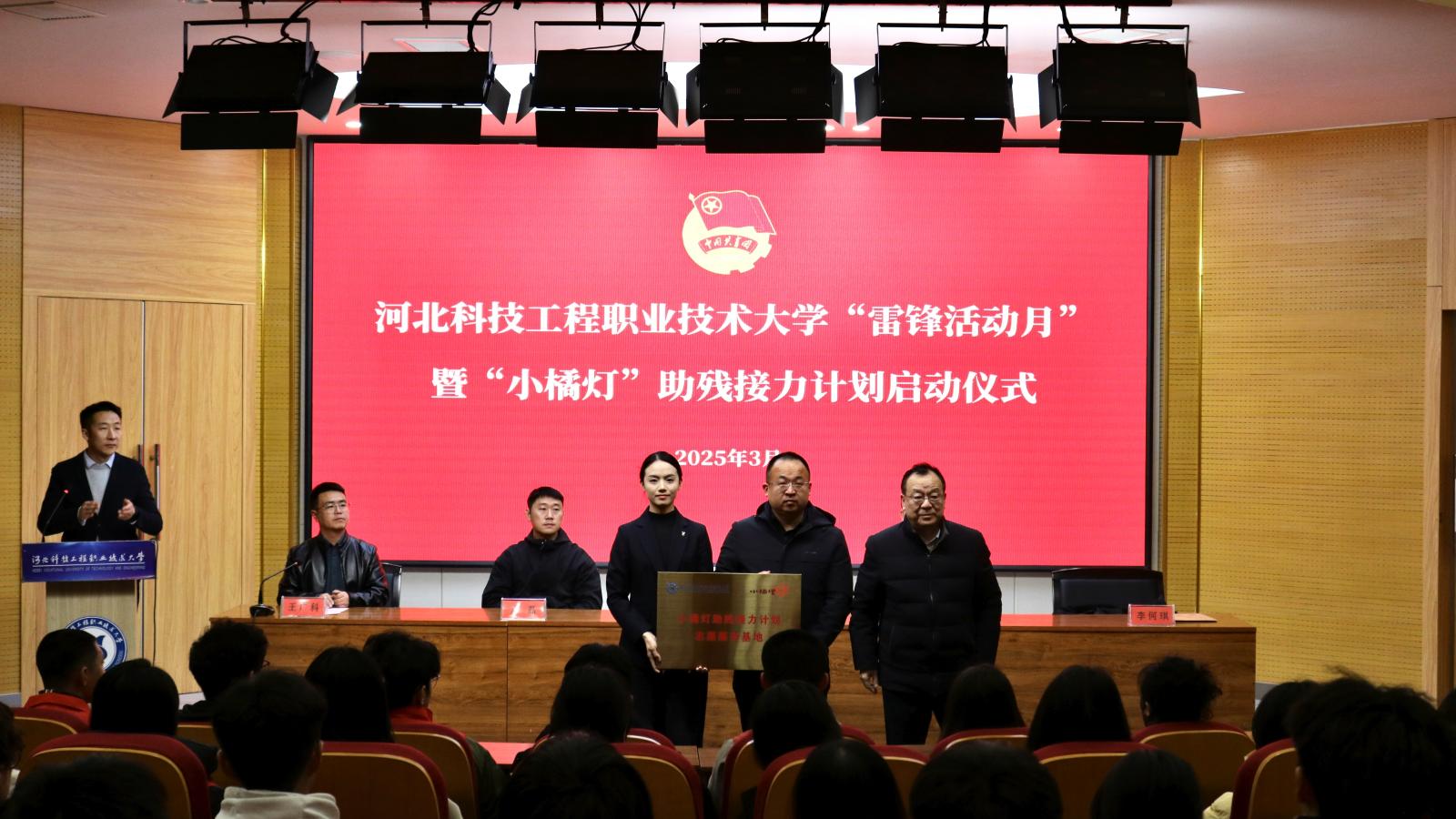为深入学习贯彻习近平新时代中国特色社会主义思想,切实提升共青团实践育人质量,推动大学生志愿服务活动走深走实,3月5日,学校在图书馆学术报告厅举办“雷锋活动月”暨“小橘灯”助残接力计划启动仪式。学校副校长赵建光、团市委志工部、市青年志愿者协会、特教学校等相关工作负责同志到场参加。