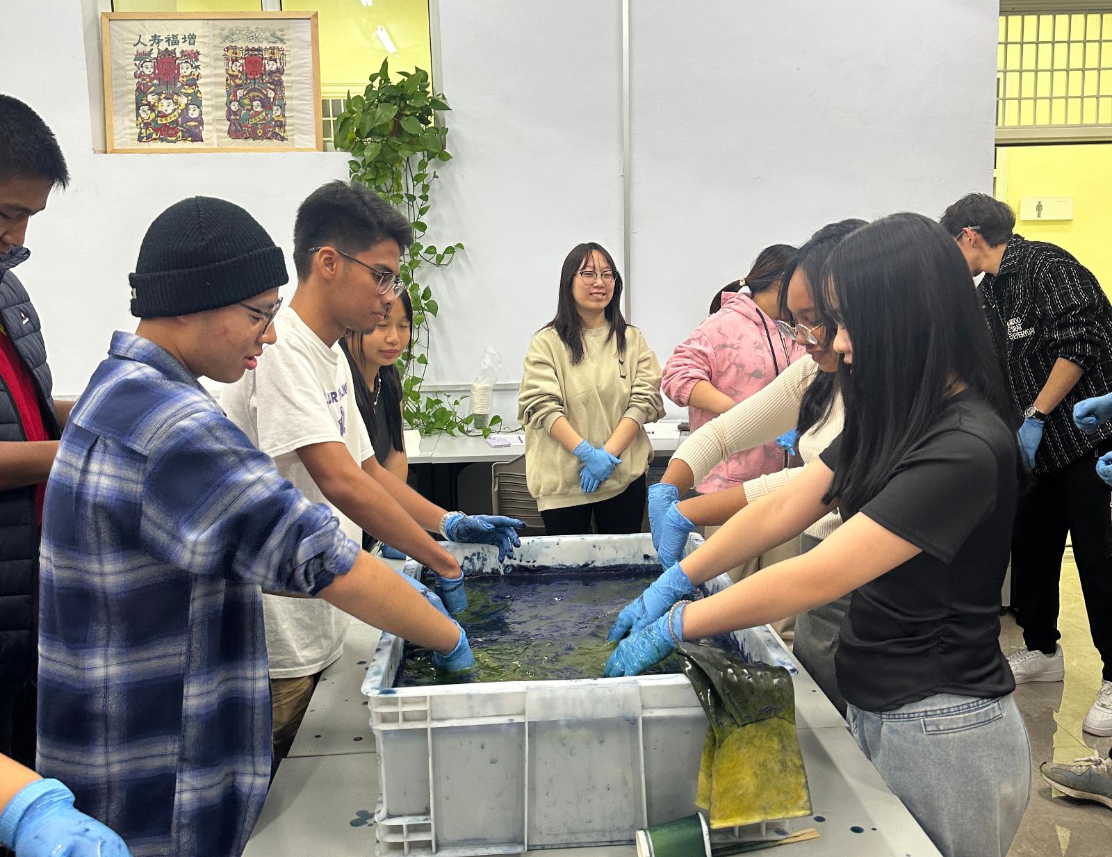 传统文化课程上,泰国同学们了解了中国传统二十四节气、一笔一划学写中国汉字,感悟中华文化的独特魅力;学习传统豆面印染工艺、亲手制作特色手工包,惊叹于中国传统技艺的高超。