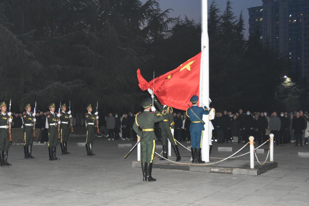 学校领导、老师、辅导员代表和全体学生参加升旗活动。