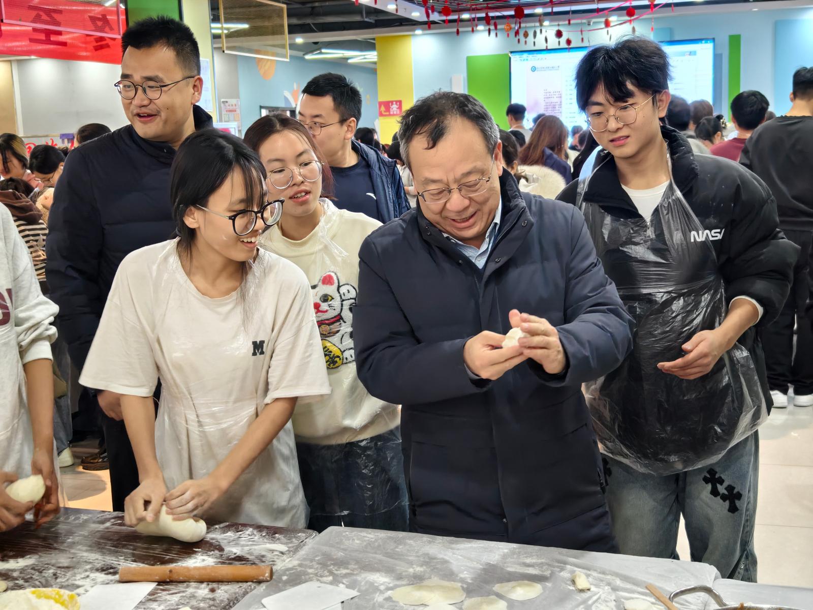 为更好传承和弘扬中华优秀传统文化,12月21日,学校举办融合美食与文化的冬至主题系列活动。副校长赵建光在现场和师生一起包饺子,畅叙师生情谊,总结一年收获,展望美好未来。
