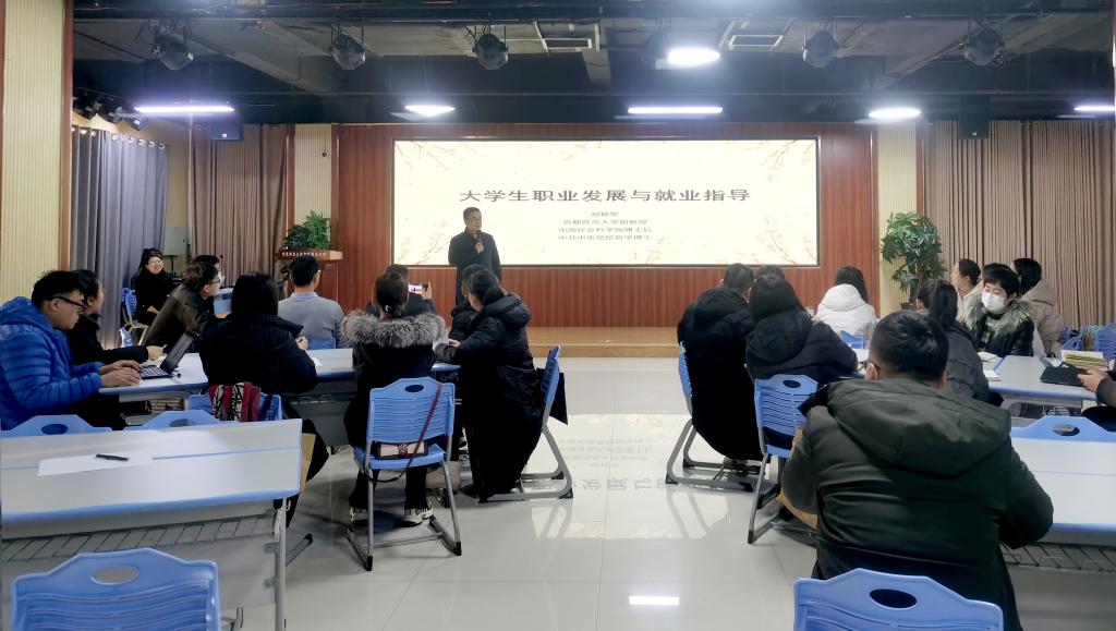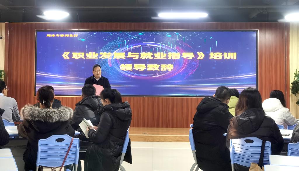 为进一步完善学校毕业生就业指导服务体系,探索新形势下职业本科职业指导课程教学模式,全面提升课程质量和实效,1月15日-16日,学校第七期《职业发展与就业指导》课程师资培训在科技楼三层路演大厅顺利举行。beat365专兼职任课教师、河北机电职业技术学院部分教师共40余人参加培训,副校长褚建立出席并致辞。