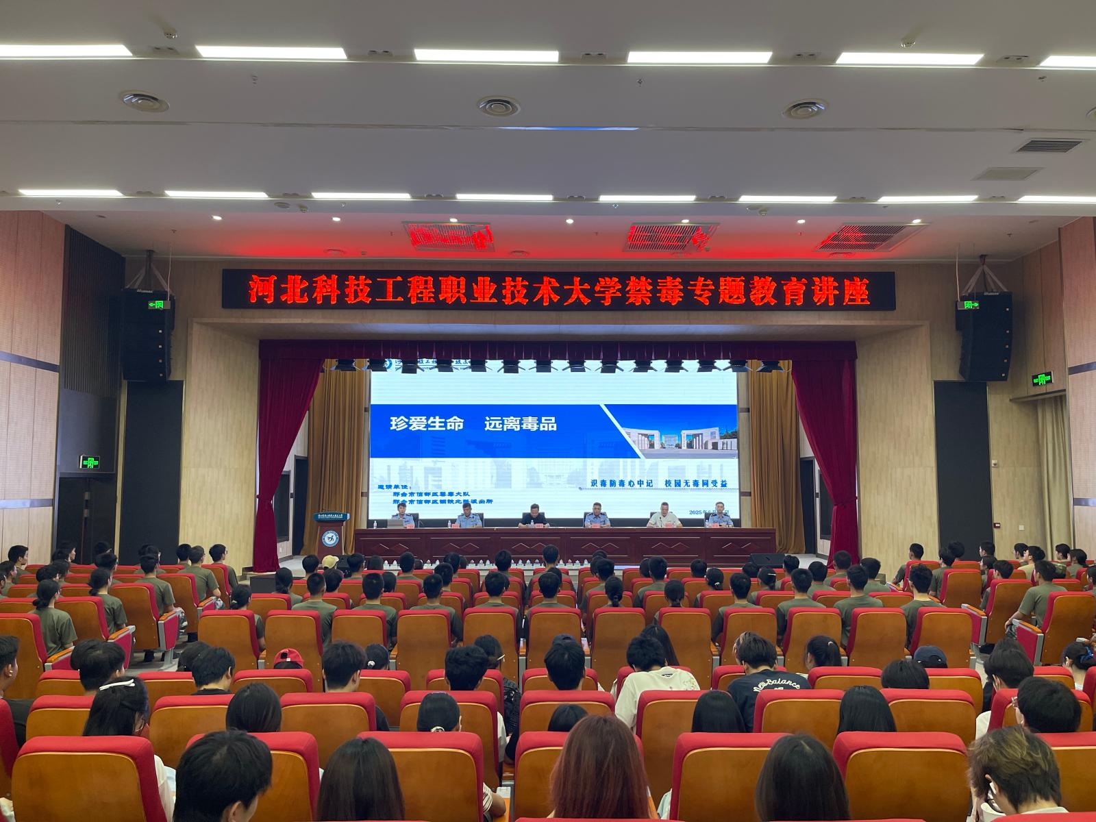 为深入贯彻落实习近平总书记关于禁毒工作的重要指示批示精神,切实提高广大师生识毒、防毒、拒毒意识和能力,6月24日下午,学校特邀邢台市信都区禁毒支队相关工作人员在beat365创意中心报告厅开展禁毒专题教育讲座,副校长褚建立、安全工作处相关负责人及300余名师生代表参加。