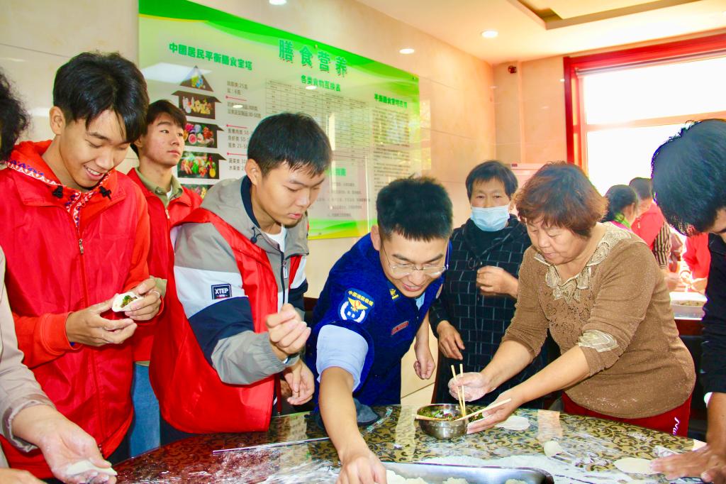 其乐融融的饺子宴温暖了现场的每一个人。学校青E行青年志愿者服务队刘明硕同学表示,作为青年学生,他会常怀敬老爱老之心,传承中华民族的优良传统,争做新时代有为青年。接下来,学校将继续用活动引领青年学生,将爱老敬老传统美德厚植青年心中,为营造尊老爱亲的良好风尚贡献青春力量。
