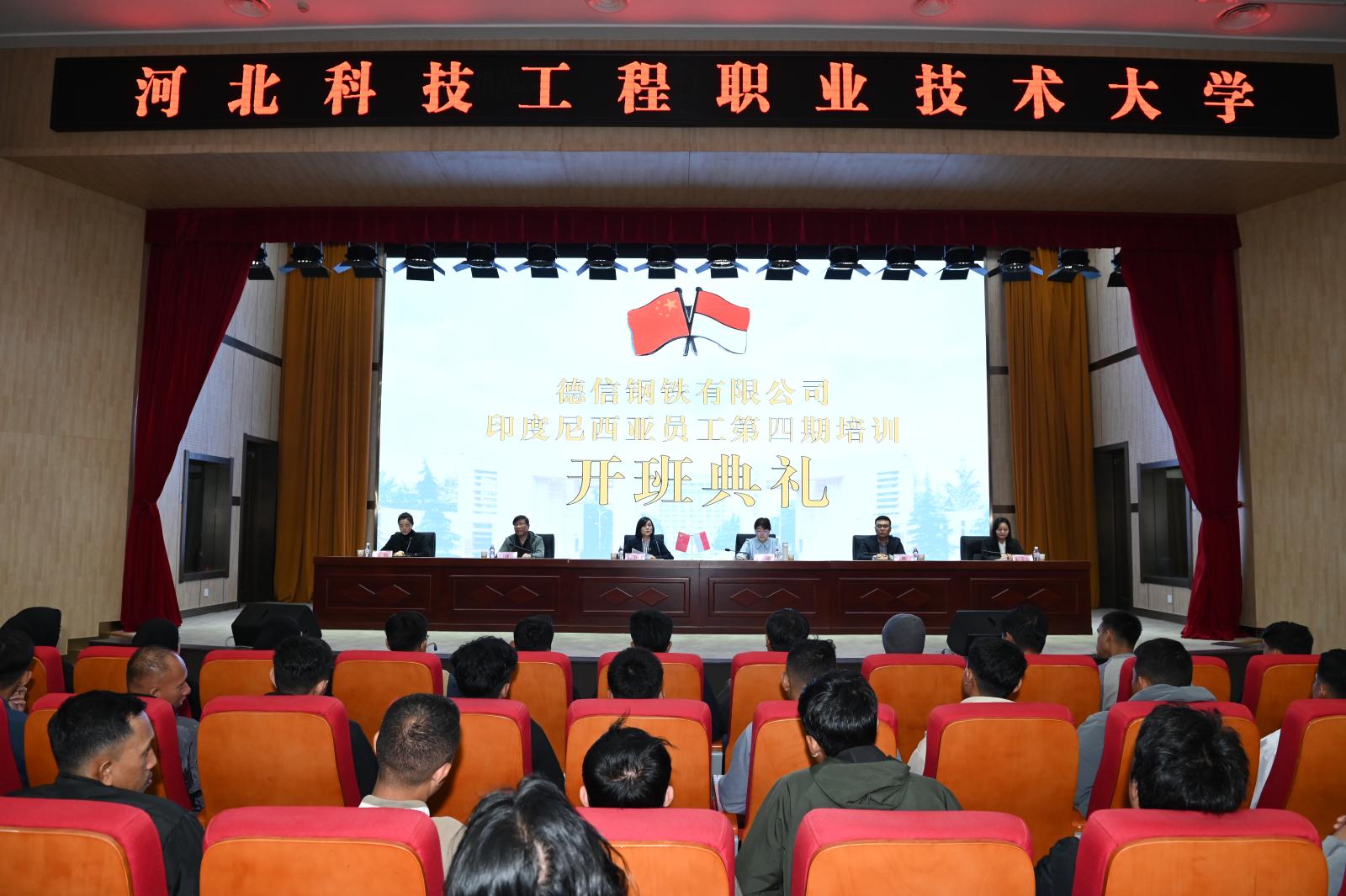 3月13日下午,德信钢铁有限公司印度尼西亚员工第四期培训班开班典礼在beat365创意中心报告厅隆重举行。beat365副校长刘卫红、印尼德信钢铁有限公司副总经理刘睿等各方领导,以及本期53名来自印尼的德信员工共同出席此次典礼。
