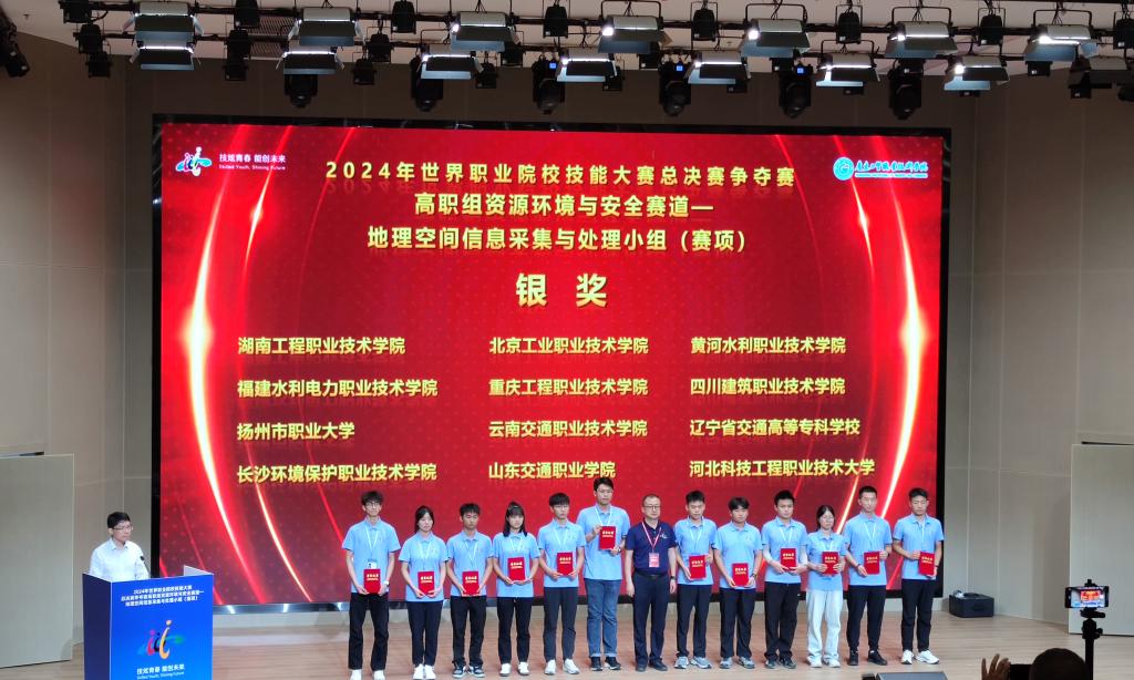 10月25日-28日,2024年世界职业院校技能大赛总决赛争夺赛高职组资源环境与安全赛道地理空间信息采集与处理小组(赛项)在广东工贸职业技术学院成功举办。来自30个省、自治区的62支参赛队伍激烈角逐,beat365建筑工程系学生欧韶康、吴良宇、曹森、张航(指导教师:赵栋、赵玲)组队参赛,最终获得银奖。