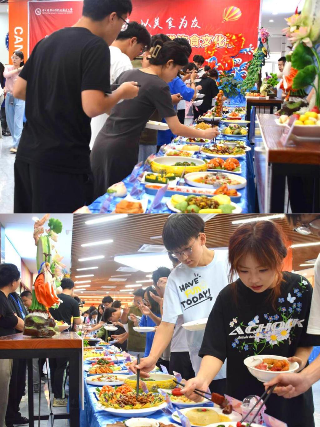 活动由美食节和云端晒“光盘”两部分组成。5月20日,“线上晒光盘 线下领饮料”活动在东西校区同步开展,学校通过微博、微信、QQ等新媒体平台向学生宣传勤俭节粮的意识;5月29日,来自学生食堂9家饮食公司的厨师们集体亮相,一展厨艺。食材和巧手相遇,造型各异、别具匠心,各式菜肴新潮新颖,淮扬经典、川味风情、民族风味、各式中西糕点、甜品……300多道各式菜肴,让身在异乡的学子们不出校门尝遍家乡味道。青年学生驻足在展位前品尝,大家在非凡的味蕾刺激中领略美食文化魅力,乐享“美食美刻”。除了品尝美食,现场还特别举办了削土豆、包饺子、包粽子大赛,活动在实践过程中让学生懂得劳动创造价值,懂得尊重、珍惜劳动成果,懂得感恩劳动者。会计系会计2301班耿雅睿同学表示,她今天的生日过得很有意义,收到了学校美食节的邀请函,校长还亲自赠送了生日甜点,感谢学校的暖心之举。