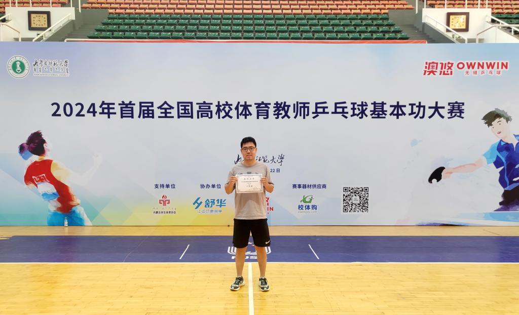 8月19日至22日,由全国高校体育教师运动技能基本功大赛组委会主办的全国高校体育教师乒乓球基本功大赛暨砂板乒乓球教学研讨会在内蒙古师范大学举办。来自全国24所高校的乒乓球领队、教练员、运动员齐聚一堂,共同开展乒乓球基本功竞技比赛和砂板乒乓球运动教学研讨。beat365体育工作部教师李泽培参赛,并获得个人基本功赛三等奖。