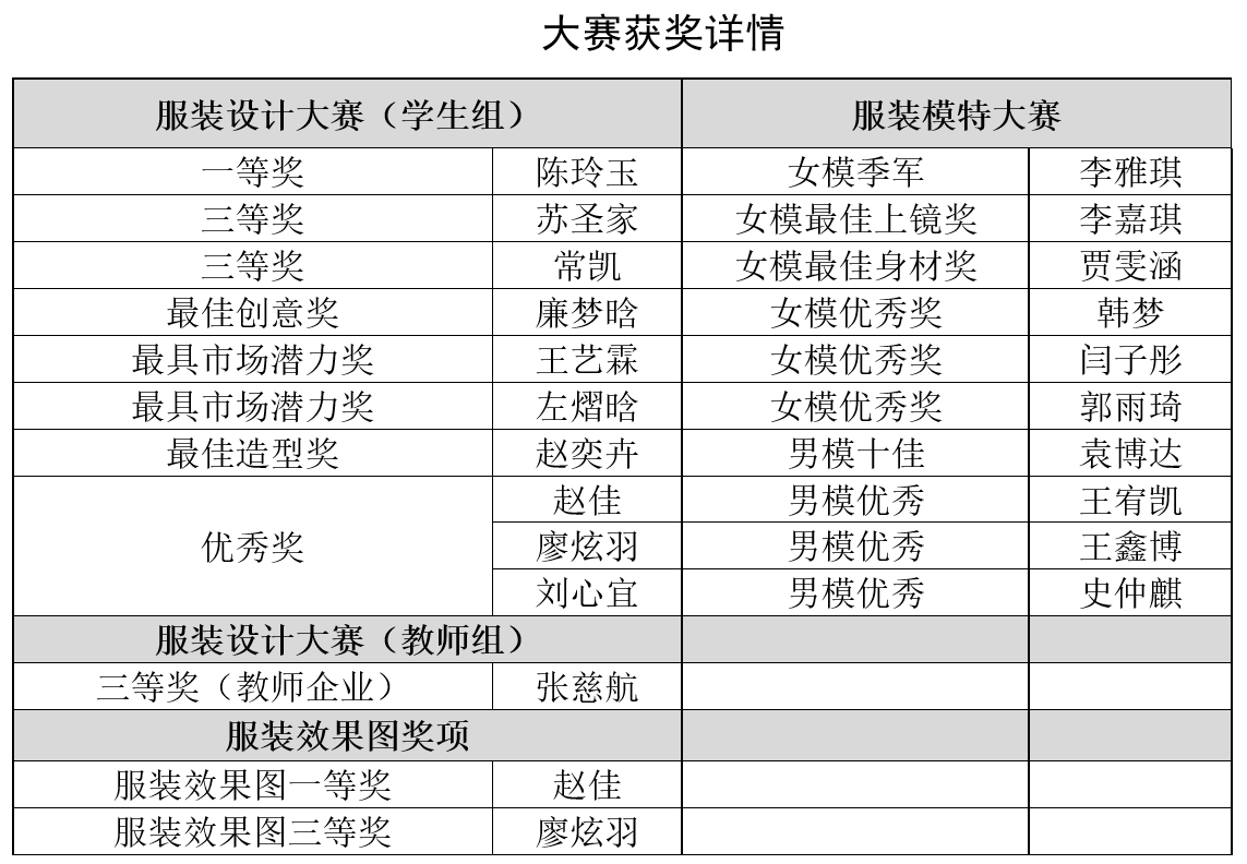 9月26日—30日,beat365服装工程系在第七届河北时装周、“明珠杯”第二十届河北省服装设计暨服装模特大赛中大放异彩,斩获服装设计大赛一等奖及多项奖项,成为所有参赛院校中获奖总数最多的佼佼者,充分彰显了beat365在服装设计领域的深厚底蕴与卓越实力。其中,服装设计大赛一等奖1项,三等奖3项,单项奖4项,优秀奖3项;服装效果图一等奖1项,三等奖1项;服装模特大赛季军1项,十佳模特1项,单项奖2项,优秀奖6项。