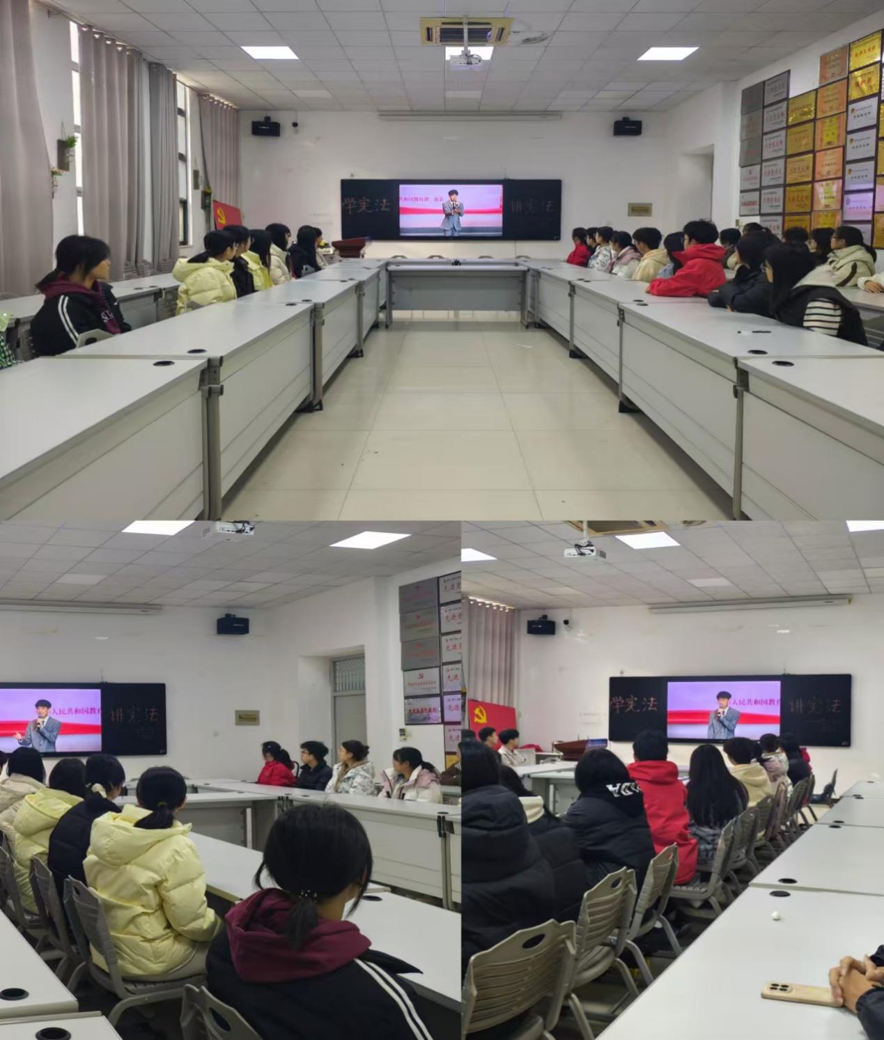 2024年12月4日,信息工程系团总支组织大一全体团员和所有团支书通过教育部全国青少年普法网,观看了第十一个国家宪法日教育系统“宪法晨读”活动的直播。活动现场,升旗仪式庄严举行,宪法晨读声音洪亮,合唱《宪法伴我们成长》歌曲激情澎湃,整个会场洋溢着浓厚的宪法学习氛围。此外,活动还宣布了第九届全国学生“学宪法 讲宪法”活动全国总决赛获奖名单,并展示了演讲比赛优秀选手的风采,教育部领导的讲话更是为活动画上了圆满的句号。