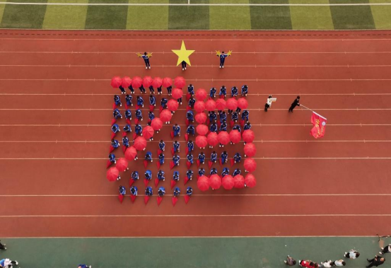 9月29日上午8点,运动会开幕式准时举行,舞龙、舞狮、刀阵等传统体育项目表演竞相炸场,尽显“中国风”。入场式中,我系方队身着统一服装,昂首阔步,目光坚定。在主席台前用花伞拼成的巨型“国旗”“75”字样献礼伟大祖国,祝福祖国75周岁生日快乐。