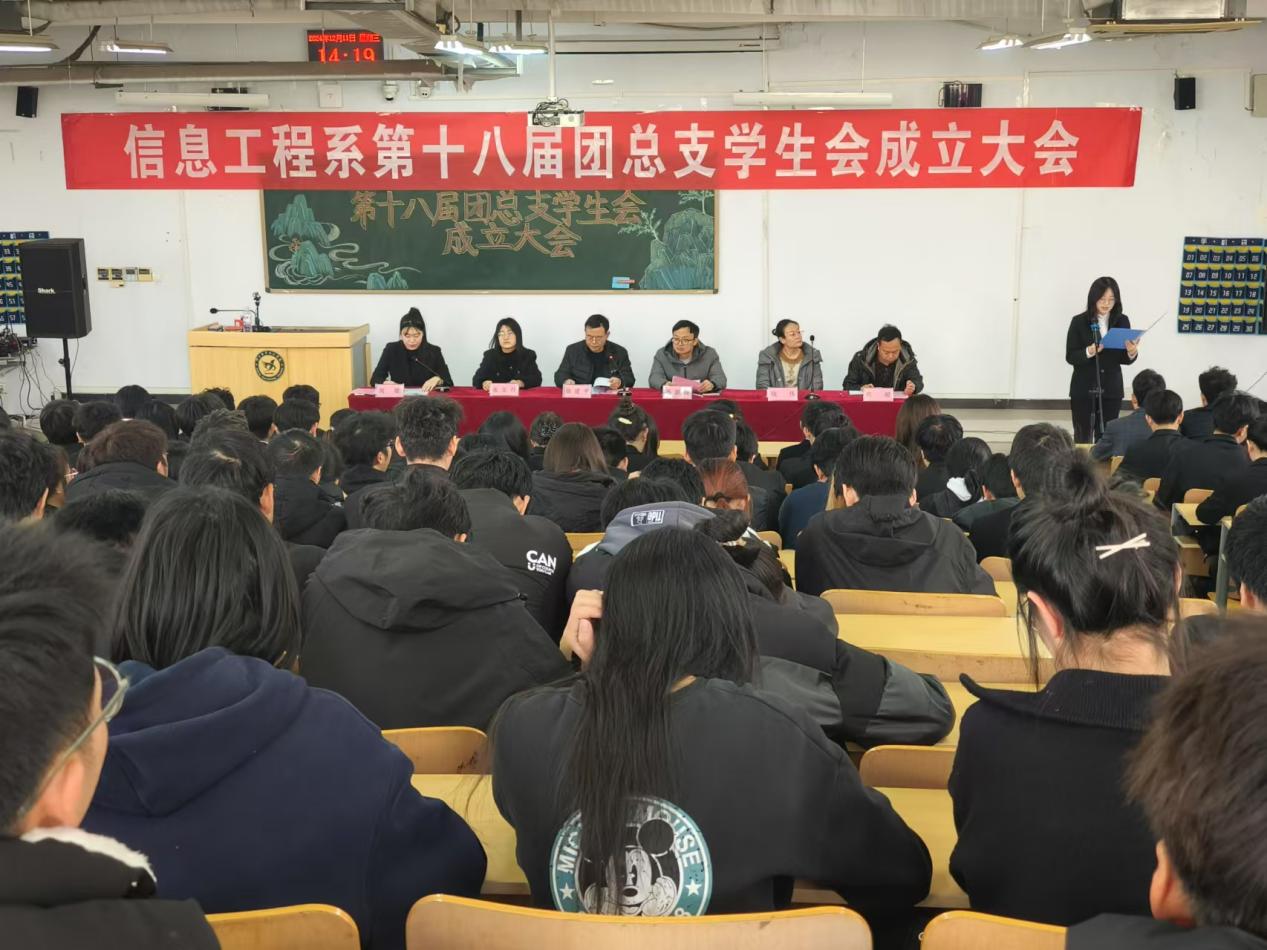 会议伊始,全体起立奏唱团歌《光荣啊,中国共青团》。随后,张玉丹老师宣读了《信息工程系关于第一届党团服务中心学生干部任命的决定》、孙新博老师宣读了《信息工程系关于第十八届团总支学生会干部任命的决定》、钱伟老师宣读了《信息工程系关于2024级班委任命的决定》。徐建平书记和各位老师分别为第十八届团总支学生会主要干部代表、2024级班干部代表颁发了聘书。王媛媛代表系第十七届团总支学生会作卸任发言,她表示时光如白驹过隙,过去一年的团总支学生会生活充实丰富,收获了成长和经验,并对新一届团总支学生会送出衷心的祝贺和美好的祝福。随后安逸冉代表第十八届团总支学生会作上任发言,她表示新一届的团总支学生会将传递第十七届团总支学生会的荣誉,传承优秀品质,秉持初心,团结一致,为信息工程系发展贡献力量。