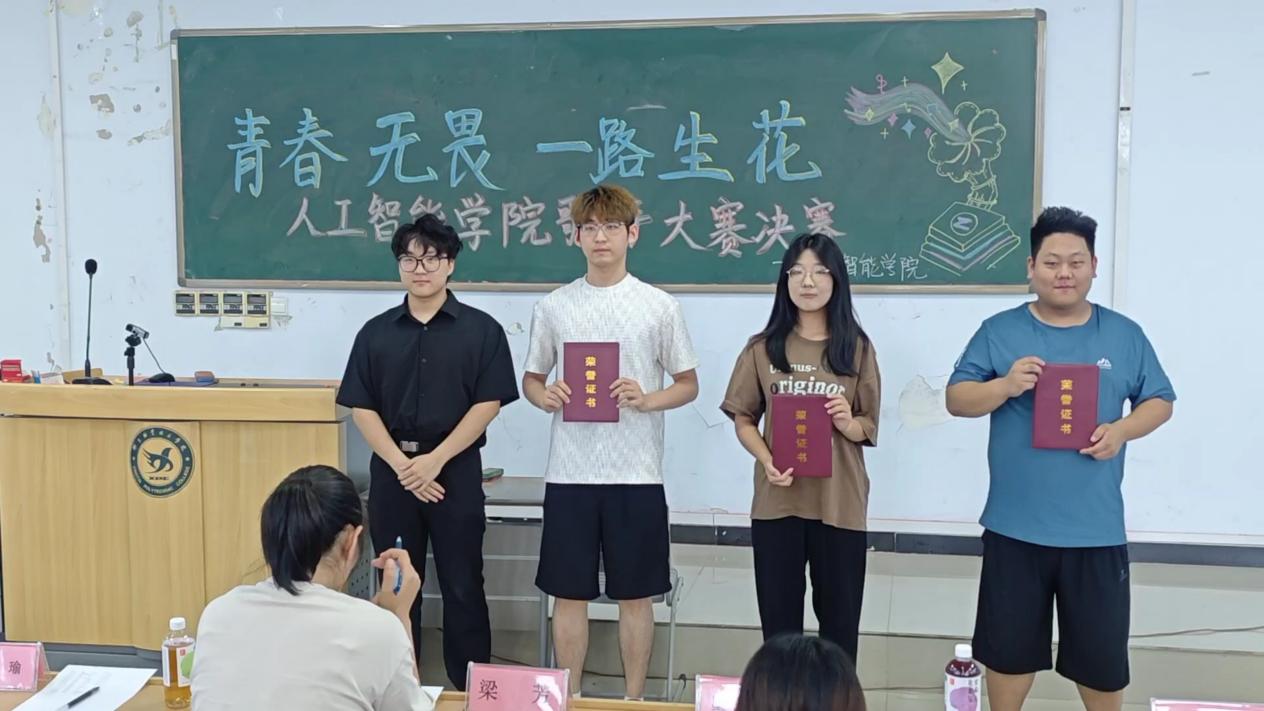 在青春的舞台上,歌声是表达自我、释放激情的最佳方式。为丰富同学们的日常生活,为同学们提供施展才华的平台,6月4日下午,我院在C4-1举办了“青春无畏,一路生花”校园歌手大赛决赛。辅导员老师梁芳和文艺部学生干部担任评委,24级学生到场观看了比赛。