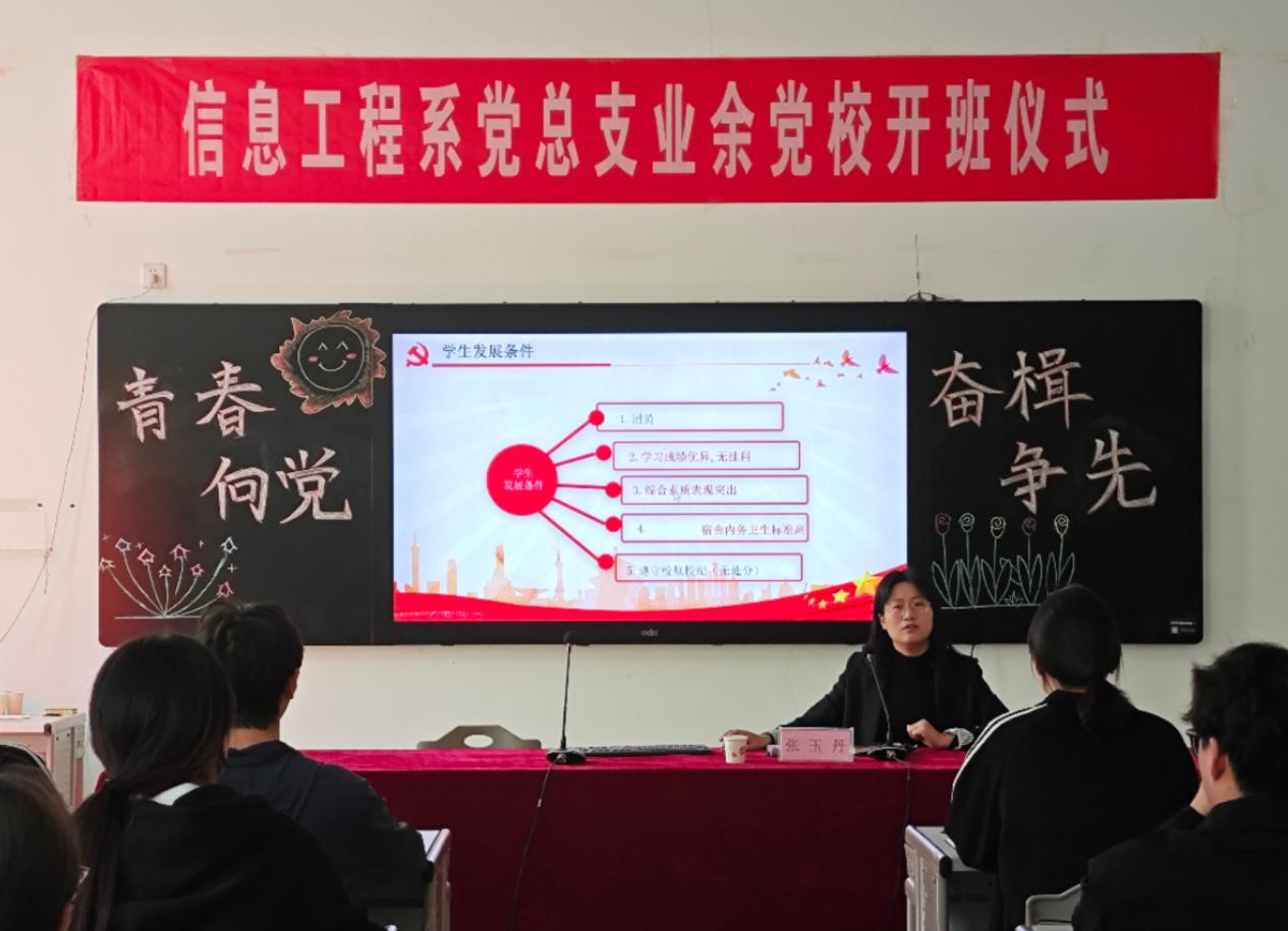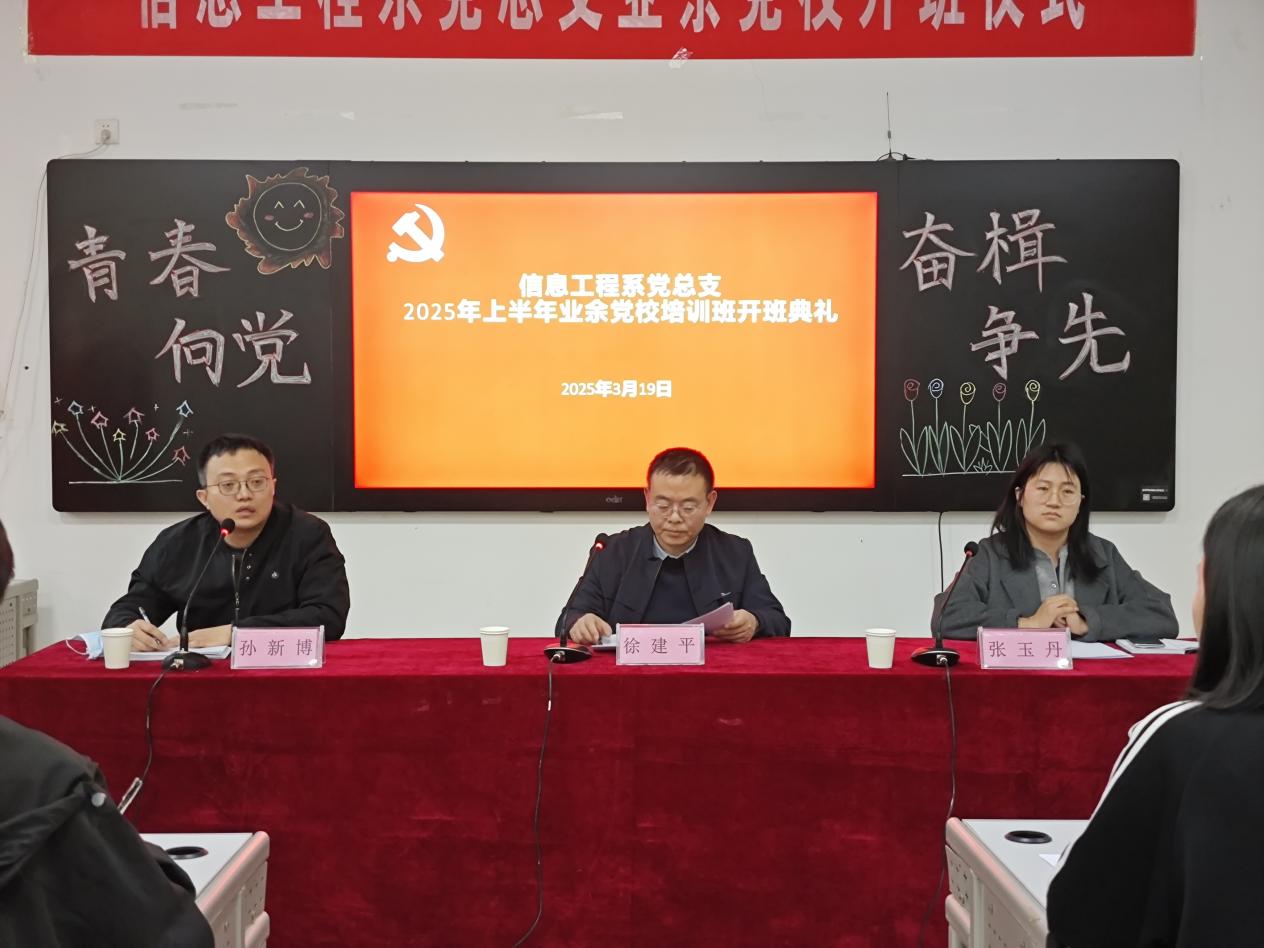 3月19日下午,我系党总支在系会议室举行了培训班开班典礼,系党总支书记徐建平、系学生科科长/系学生党支部组织委员孙新博、系学生党支部书记张玉丹出席了会议,会议由孙新博科长主持。徐建平书记作了学习动员,并对培训班学员提出了要求和希望:一是明确学习目的,学以致用;二是提高思想认识,端正入党动机;三是加强党性锻炼,争取早日入党。张玉丹老师就培训班的学习计划和学习要求做了具体说明。