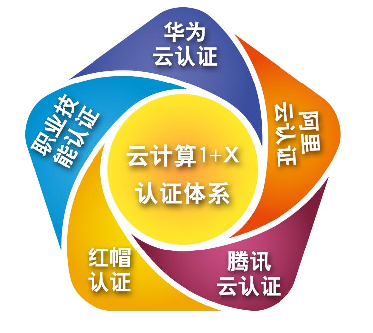 全面对标1+X认证体系,与行业内领先企业华为、腾讯、红帽、阿里等企业合作,在校期间即可考取华为云计算HCIA、HCIP、HCIE证书,腾讯云服务操作初级、中级、高级证书,红帽初级RHCSA、中级RHCE证书,阿里云ASA证书等,确保学生在毕业时可以获得“1+X”证书,提高学生就业质量。