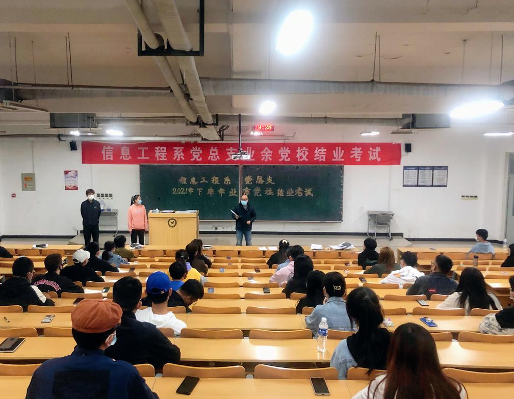 10月11日晚,结业考试在C2-1教室进行,监考人员有序组织,全体学员认真作答。考试结束后,全体学员向系党总支提交了学习心得体会和《党校培训鉴定表》。至此,为期八天的2021年下半年入党积极分子业余党校培训班圆满结束。