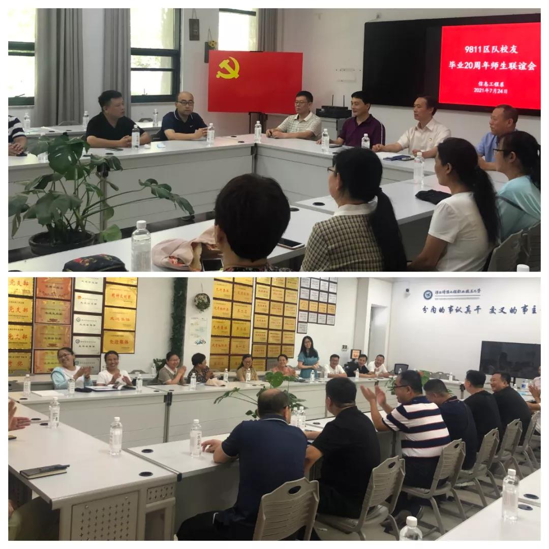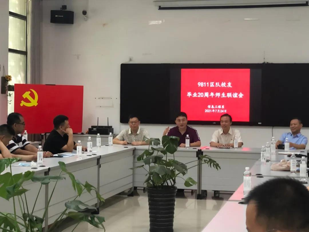 上午10:00, 9811区队校友毕业20周年师生联谊会在信息工程系一层会议室举行。现任信息系党总支书记(时任电子工程系学员队队长)黄小林主持师生座谈,刘彦舫老师、李建武老师、尤春阳老师应邀参加,信息系主任王海宾、副书记武立博、学生党支部书记李慧琼参加座谈。