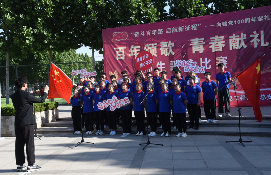 为庆祝党的百年华诞,讴歌党的丰功伟绩,信息工程系于5月26日下午在西区广场开展了“百年颂歌,青春献礼”师生歌咏比赛决赛。